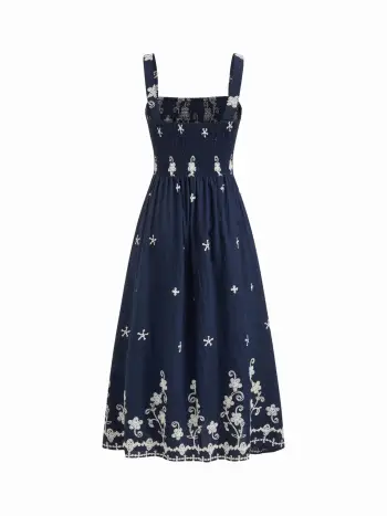 Flowing maxi dress with a feminine floral pattern and square neck.