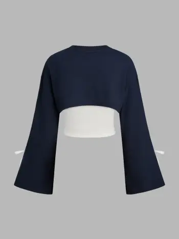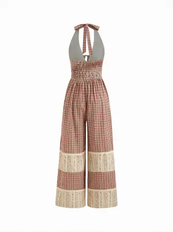 Plaid and floral two-tone design with a chic tie-front bowknot.